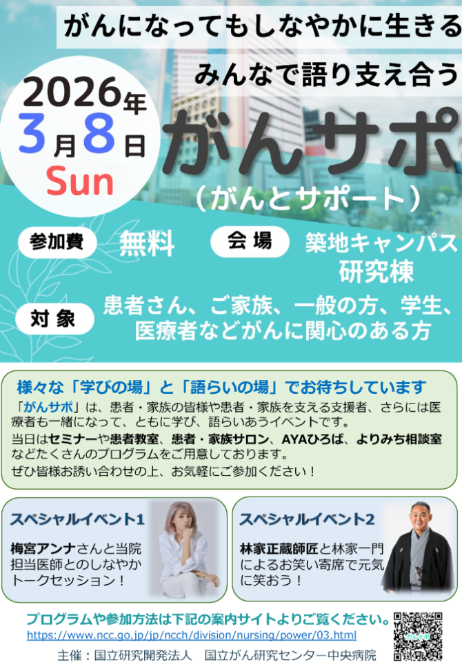 国立がん研究センター中央病院主催「がんとサポート2026(がんサポ2026)」の講師を担当しました。